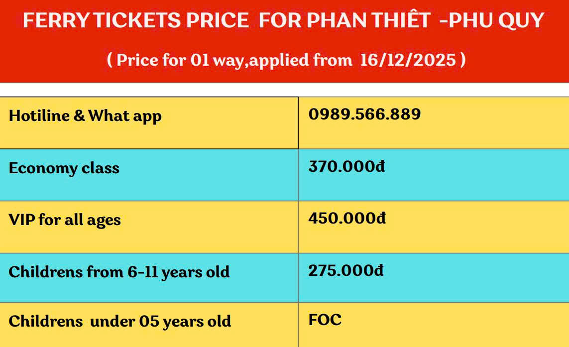 APPLIED FOR  RẠCH GIÁ -PHÚ QUỐC & HÀ TIÊN -PHÚ QUỐC It is 20% cancelation fees if that ferry is not full , period time for cancelation is at least 03 hours before ferry depart time .Change tickets to another day for the same route is free if your ferry booked is not full.If you miss your ferry, use the same tickets for the next ferry in the same day if the next ferry is still available. Full refund incase of the bad weather, technical proplem, security issues…our highest duty is refund ferry tickets value only.No any other compensation.   APPLIED FOR TRẦN ĐỀ - CÔN ĐẢO It is 30% cancelation fees if that ferry is not full , period time for cancelation is at least 24 hours before ferry depart time .Change tickets to another day is 20%fees and inform 24 hours before depart time if your ferry booked is not full.If you miss your ferry, use the same tickets for the next ferry in the same day if the next ferry is still available. Full refund incase of the bad weather, technical proplem, security issues…our highest duty is refund ferry tickets value only.No any other compensation   APPLIED FOR VŨNG TÀU - CÔN ĐẢO It is 30% cancelation fees if that ferry is not full , period time for cancelation is at least 24 hours before ferry depart time .Change tickets to another day is 20%fees and inform 24 hours before depart time if your ferry booked is not full.If you miss your ferry, use the same tickets for the next ferry in the same day if the next ferry is still available. Full refund incase of the bad weather, technical proplem, security issues…our highest duty is refund ferry tickets value only.No any other compensation.     APPLIED FOR PHAN THIẾT - PHÚ QUÝ It is 30% cancelation fees if that ferry is not full , period time for cancelation is at least 24 hours before ferry depart time .Change tickets to another day is 30%fees and inform 24 hours before depart time if your ferry booked is not full.If you miss your ferry, use the same tickets for the next ferry in the same day if the next ferry is still available. Full refund incase of the bad weather, technical proplem, security issues…our highest duty is refund ferry tickets value only.No any other compensation.